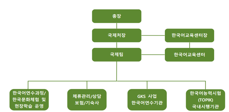 2006년 대구․경북지역 최초로 국립국제교육원에서 주관하는 한국어능력시험(TOPIK) 국내시행기관으로 지정되어 한국어를 모국어로 하지 않는 재외동포와 외국인의 한국어 사용능력 신장에 소임을 다하고 있으며, 2016년부터 정부초청 외국인 장학생 한국어연수기관으로서 대외적으로 공신력을 인정받고 있습니다.